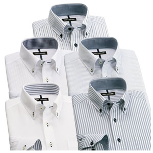 \ページ限定・ティースプーン付/ 形態安定ワイシャツセット 【形態安定こだわり爽快ワイシャツ 同サイズ5枚組】【送料無料・代引料無料】[ノーアイロンOKのおしゃれなボタンダウンシャツセット]