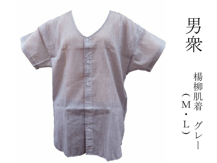 男衆 楊柳肌着 グレー Mサイズ Lサイズ 楊柳シャツ 男性肌着 白衣 作務衣 和装 小物 男性下着 メンズ 洗える 綿シャツ 紳士用 無地肌着 紳士着物 紳士和装下着 紳士浴衣 メンズ浴衣下着