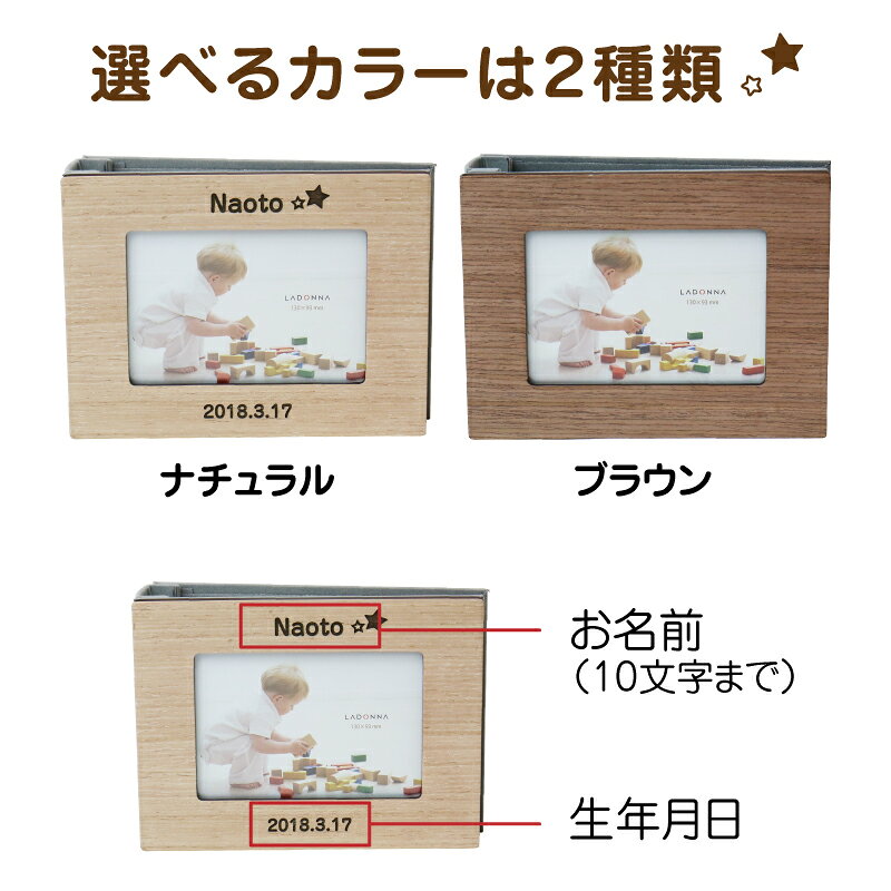 ● 商品情報 やさしい天然木がナチュラルでやさしい風合いのベビーフレーム 中は写真収納用ポケットが80こついた アルバムになっています コンパクトなサイジングで ナチュラルな風合いはリビング・玄関・キッチン どんなお部屋にも合うデザインです 飾る・見る・収納する かわいいだけじゃない 木製のアルバムフォトフレームです お名前と生年月日が入るから 出産祝いや誕生日のプレゼントにぴったりです 世界にひとつだけの贈物は特別感いっぱい! ● サイズ 外寸:181×134 内寸:132×95 窓寸:116×79 フレーム:L判1枚 ● 素材 ベニヤ、MDF ● 名入れについて 名前:ひらがな・漢字・ローマ字すべてOK(10文字まで) 日付:数字 どちらも備考欄へご記入気ください ●備考 ※改良のため、予告なく仕様変更する場合があります。