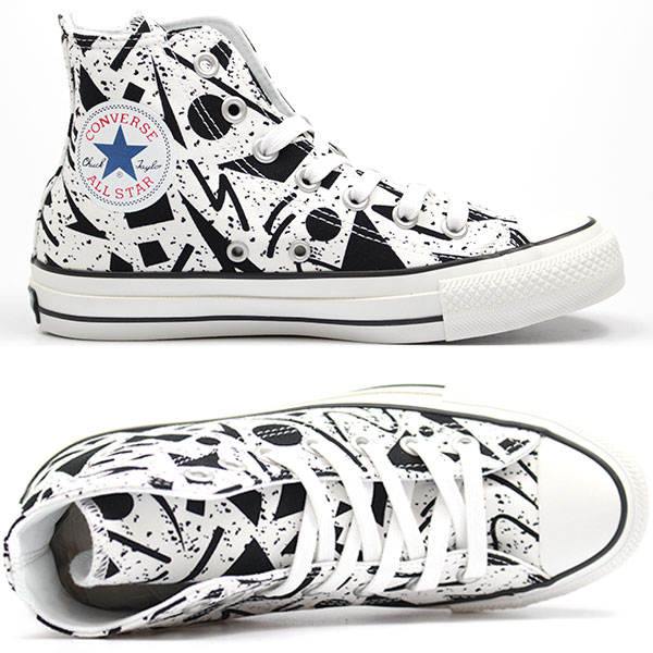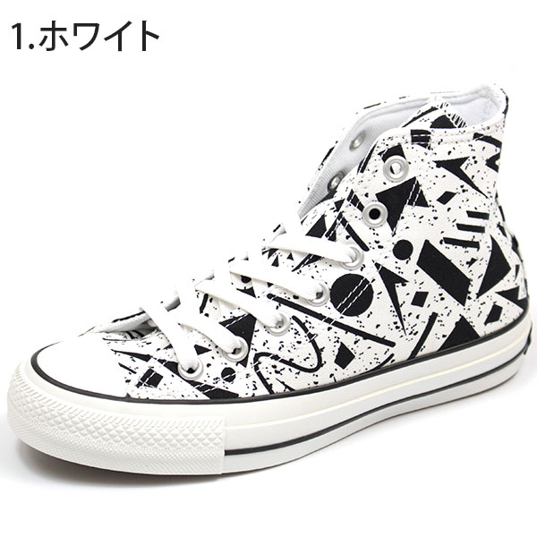 コンバース スニーカー メンズ レディース 23.0-28.0cm 靴 男性 女性 ハイカット CONVERSE ALL STAR 100 GEOMETRIC HI オールスター 100周年 幾何学柄 黒 白 可愛い ユニセックス 防滑 滑りにくい リアクトインソール 低反発 おしゃれ 【正規品】 tok